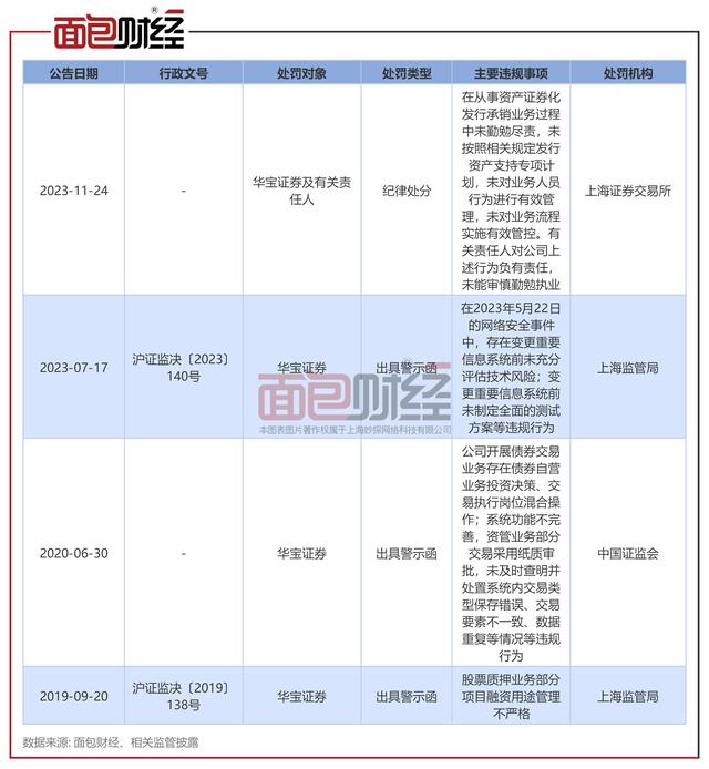 据公告显示,因在资产证券化发行承销业务过程中存在未勤勉尽责等问题,华宝证券被上交所处以1年内不接受其提交的公司债券、资产支持证券申请文件的纪律处分。