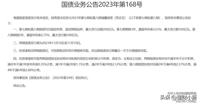 2023年将发行第七期和第八期的储蓄国债(凭证式)。