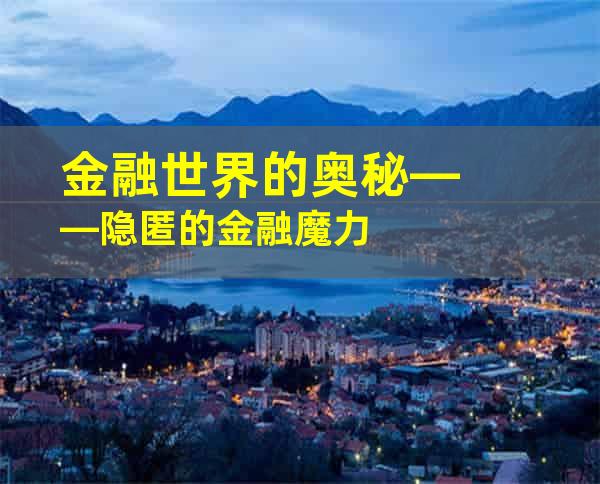 金融世界的奥秘——隐匿的金融魔力